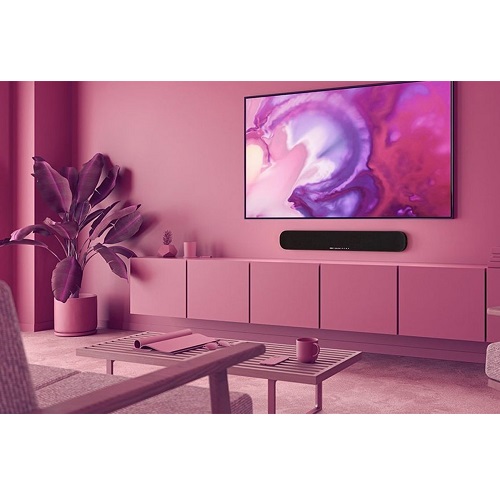 Стильний дизайн у тонкій і компактній формі. Розумно спроектований центральний блок гармонійно виглядає поряд з екраном, навіть якщо розмістити його перед телевізором. Конструкція з отвором для настінного монтажу забезпечує простоту установки.